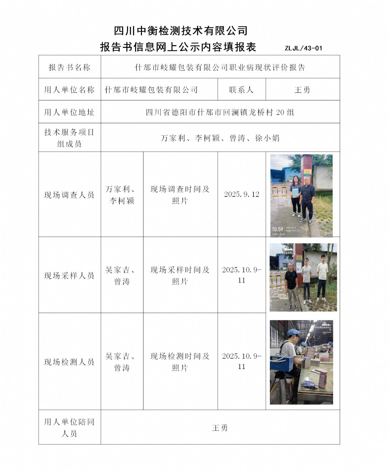 什邡市岐耀包装有限公司职业病现状评价报告